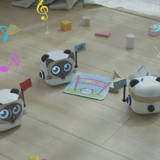 mTiny is a little robot with an adorable panda look, three types of dress-up, more than ten pre-set emotions, and 300+ sound effects.